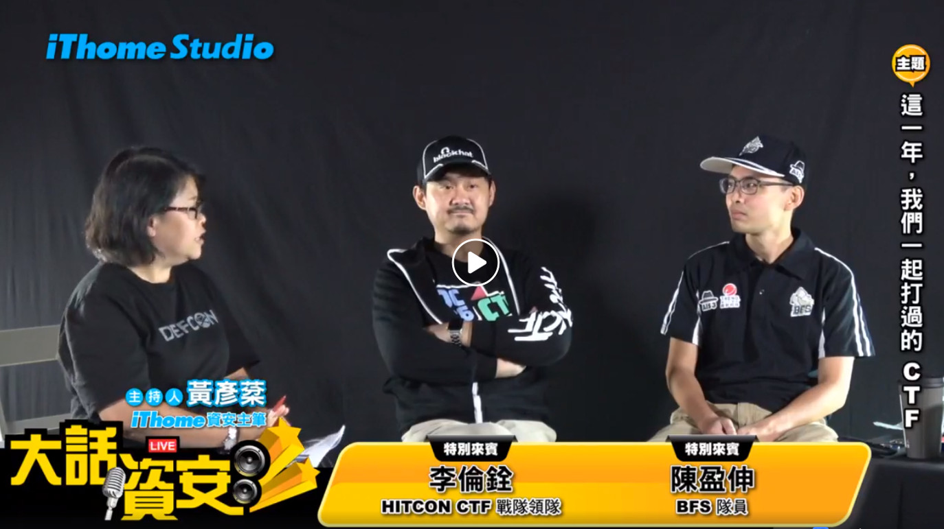 在DEF CON結束之後,iThome特別邀請多年來領軍征戰全球各大CTF的HITCON戰隊領隊李倫銓(Alan),在此次DEF CON CTF戰役回國後的第一時間,8月16日中午12點就來大話資安直播現場,跟大家分享第一手消息。